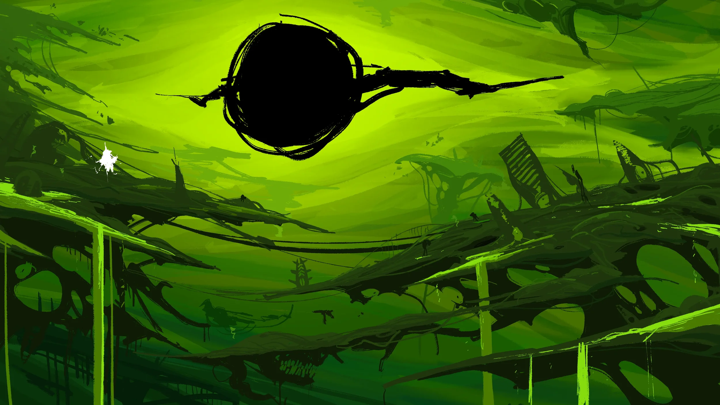 A DISGUSTING, CONVULSING ARCHIPELAGO OF SKY ISLANDS FLOATING ABOVE AN ENDLESS ABYSS OF GREEN. THE LANDMASS STRETCHES HIMSELF OUT AS TIME PASSES— SLIMILY CONNECTING AND DETACHING FROM HIMSELF TO BECOME NEW ISLANDS. MANY WRETCHED MONSTERS SPAWN UPON HIS SURFACE ALL WITH THE INTENTION OF INJECTING THIS PLACE’S DEADLY VIRUS INTO ANY NEW VICTIMS THEY CAN FIND. HOWEVER, EVERY THREE TO SEVEN DAYS, THE MASSIVE “BLACK HOLE” IN THE DISTANCE SUCKS UP ALL OF THE PLANET’S MATTER (INCLUDING THE PONDS OF ACID FALLING BELOW) AND VOMITS IT BACK OUT. THE NEW LANDMASS BECOMES NOW JUST EVER SLIGHTLY BIGGER THAN BEFORE— ABSORBING THE BODIES OF THE MONSTERS WHO ONCE LIVED AND BECOMING ONE WITH THE PLANET.